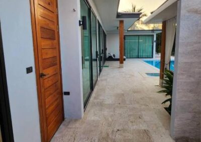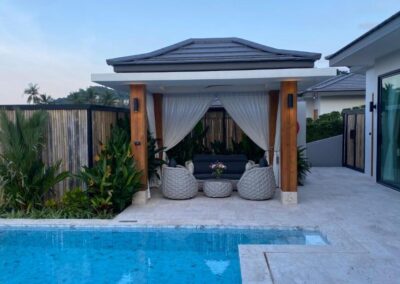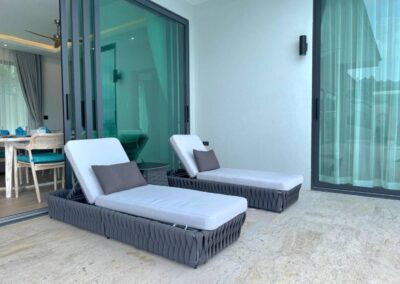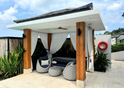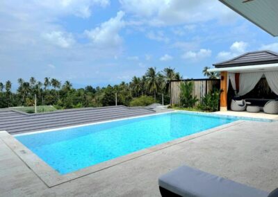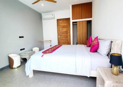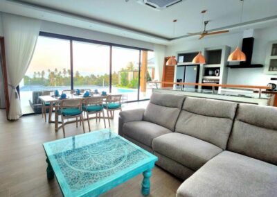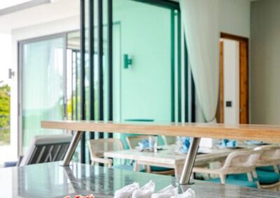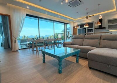 Villa Tabtin je prostorná 4-ložnicová vila s vlastní terasou a panoramatickým výhledem na moře. Interiér je klimatizovaný a vybavený moderně — každý pokoj má vlastní koupelnu, pohodlné postele a dostatek úložného prostoru. Velká kuchyně a otevřený obývací prostor jsou ideální pro rodiny a skupiny přátel, kteří chtějí trávit čas společně. Luxusní nekonečný bazén a venkovní posezení přinášejí pocit resortové dovolené s pocitem soukromí.