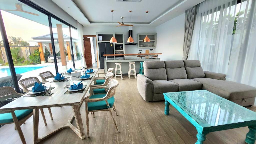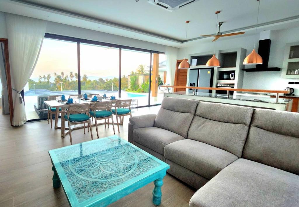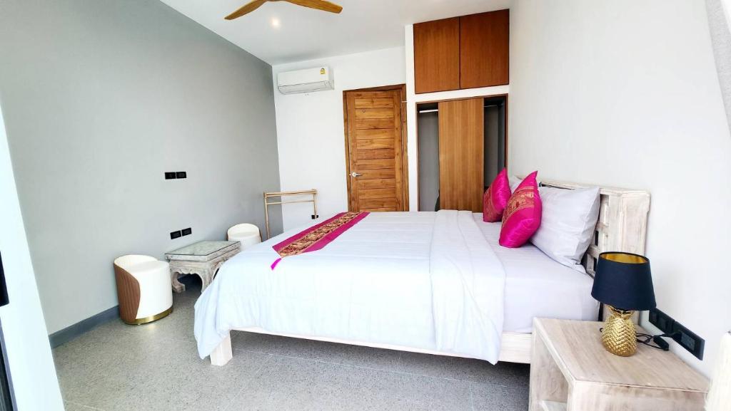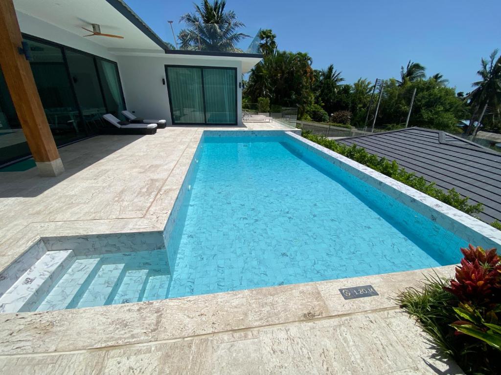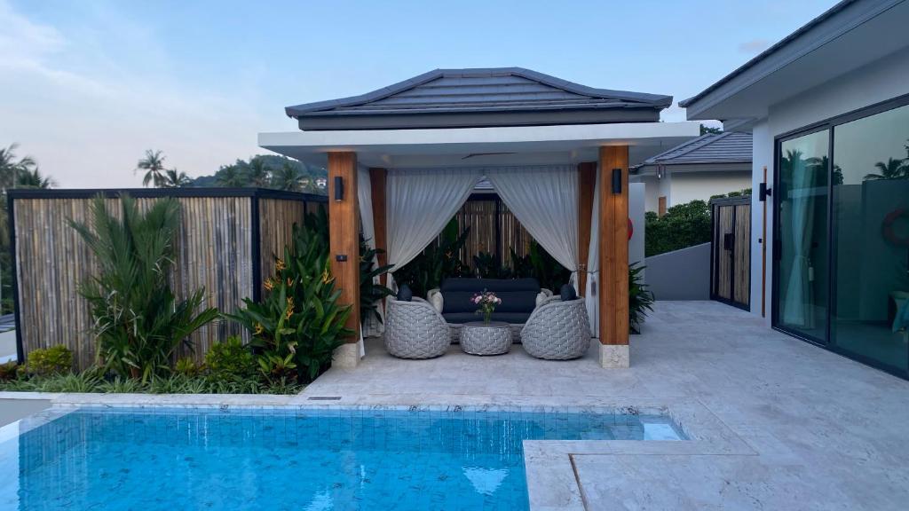 Villa Tabtin je prostorná 4-ložnicová vila s vlastní terasou a panoramatickým výhledem na moře. Interiér je klimatizovaný a vybavený moderně — každý pokoj má vlastní koupelnu, pohodlné postele a dostatek úložného prostoru. Velká kuchyně a otevřený obývací prostor jsou ideální pro rodiny a skupiny přátel, kteří chtějí trávit čas společně. Luxusní nekonečný bazén a venkovní posezení přinášejí pocit resortové dovolené s pocitem soukromí.